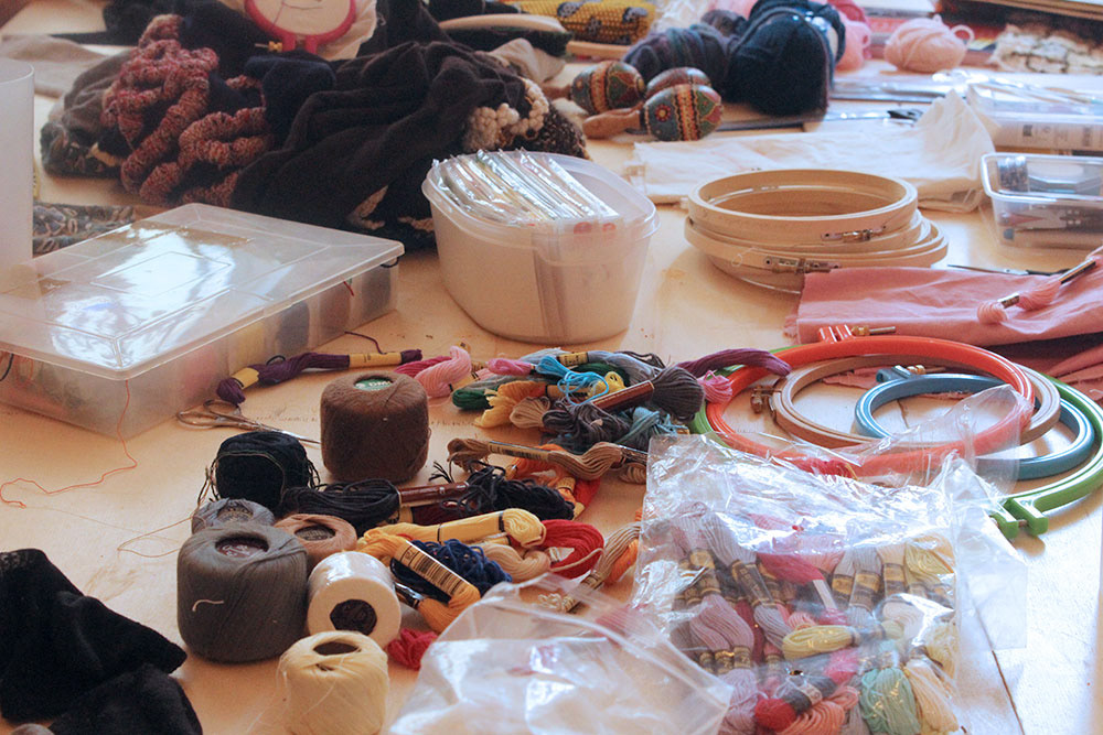 Autour d’une table, nous entamons chacun et chacune un cadavre exquis brodé.