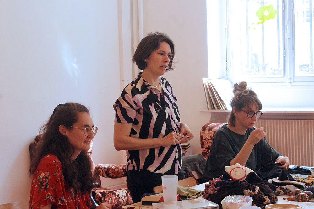 Je leur apprends 4 points de broderie simple qu'ils et elles se sentent libre d'utiliser en fonction de leur broderie. Cet atelier amène un certain lâcher prise, une confiance en l'autre autour de la pratique de la broderie.